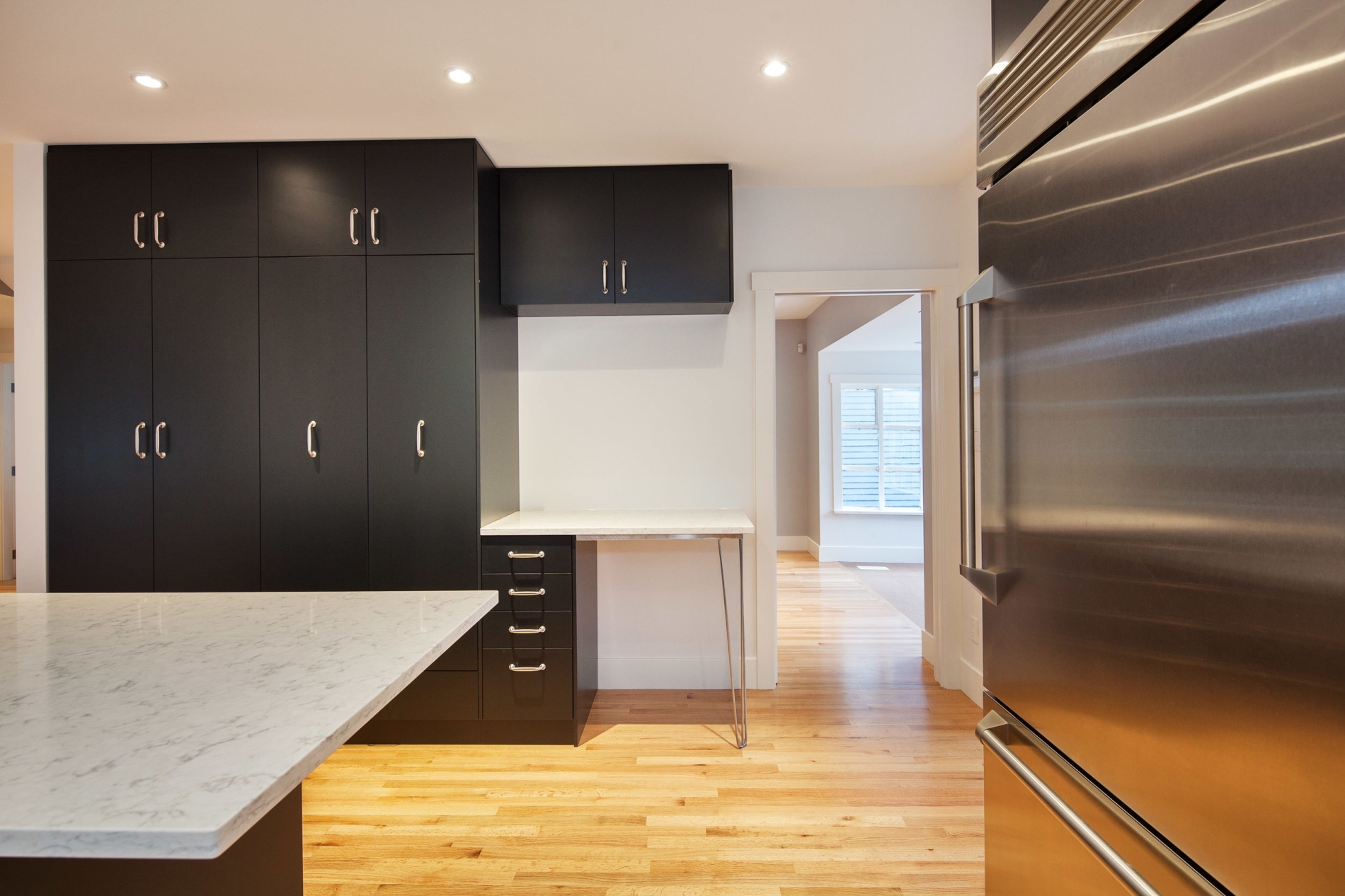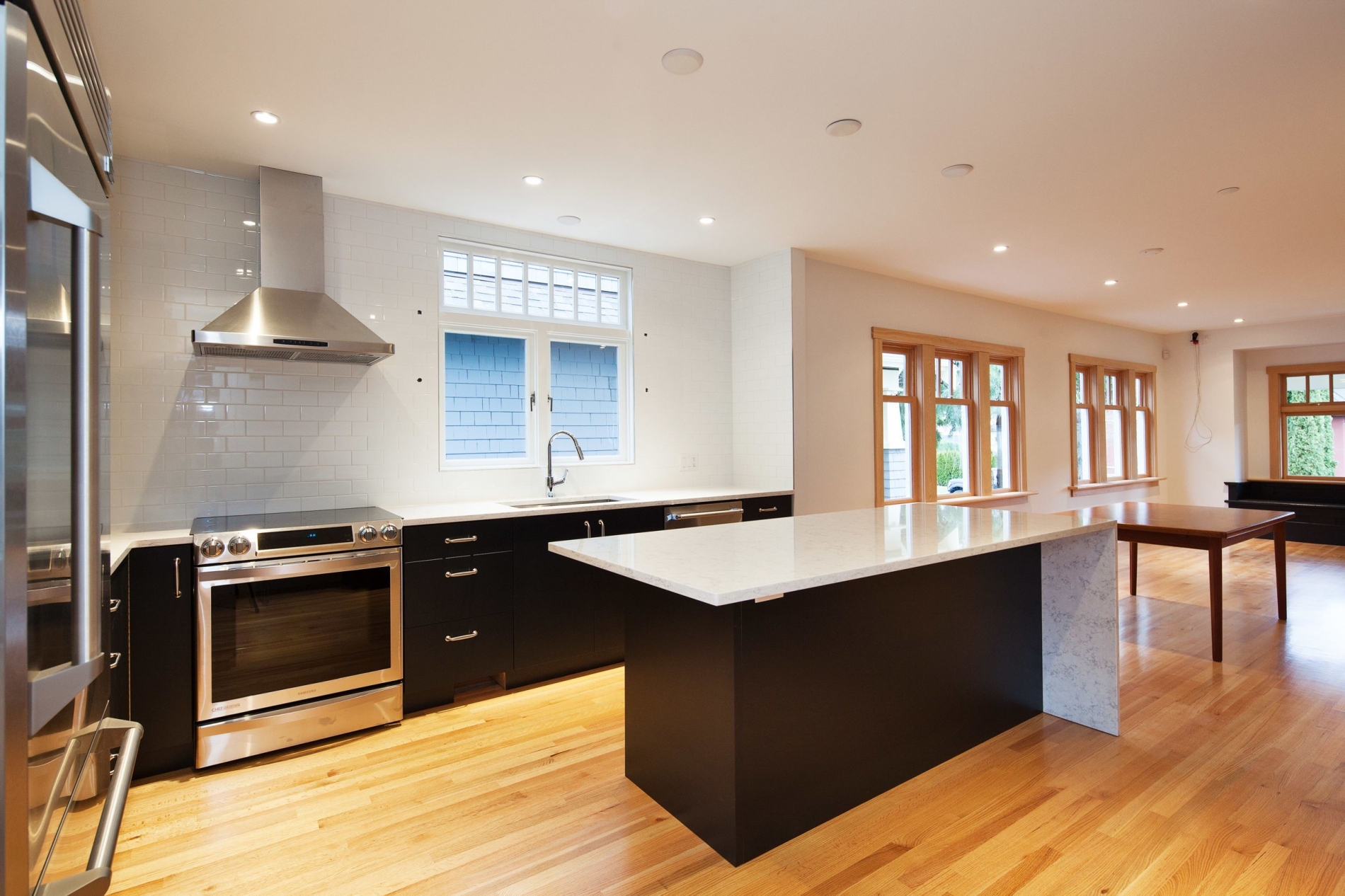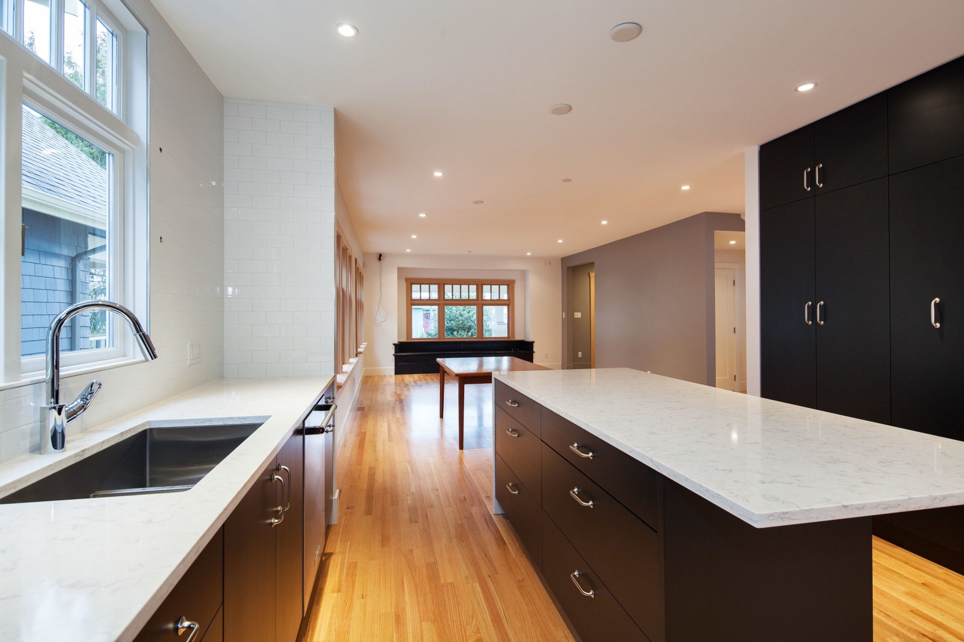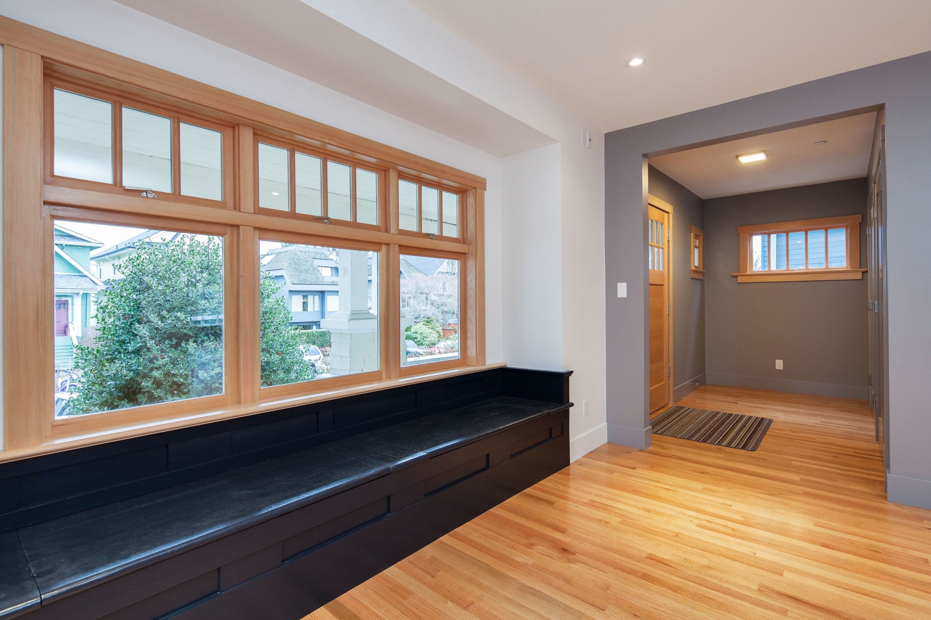 The clients purchased a 1910s home in Kitsilano, which had been partially updated by previous owners. They aimed to transform the space by creating an open-concept main living area, and undertaking a complete structural rebuild of the entire home. All electrical and plumbing systems were updated, while the original character of the home was preserved. Modern additions include a spa-like ensuite bathroom and a contemporary kitchen. The floors, made of quarter-sawn red oak, not only highlight the wood's grain but also offer durability for a bustling young family.
